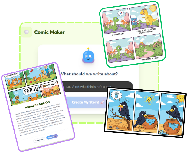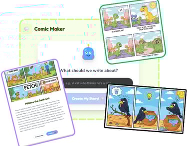 With Tinycapes AI, kids turn their ideas into visual comic stories by simply describing characters, scenes, and dialogue.
