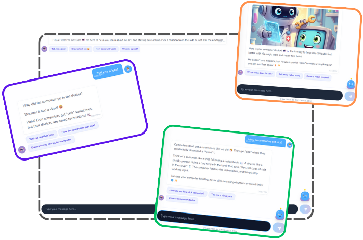 No open internet. No adult content. No unsafe outputs. Tinycapes AI is a closed, guided and supervised environment.