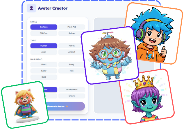 With Tinycapes AI, kids design their own digital avatars by choosing styles, features, and personalities that reflect who they are or who they imagine being.