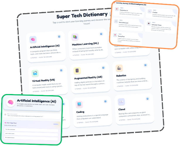 With Tinycapes AI’s Tech Dictionary, kids explore concepts like artificial intelligence, coding, robotics and digital safety explained in clear, kid-friendly language.